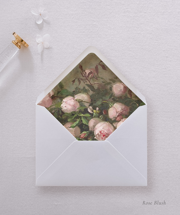 Explore our meticulously curated collection of envelope liners and vellum wraps, thoughtfully selected to complement and enhance your invitations.