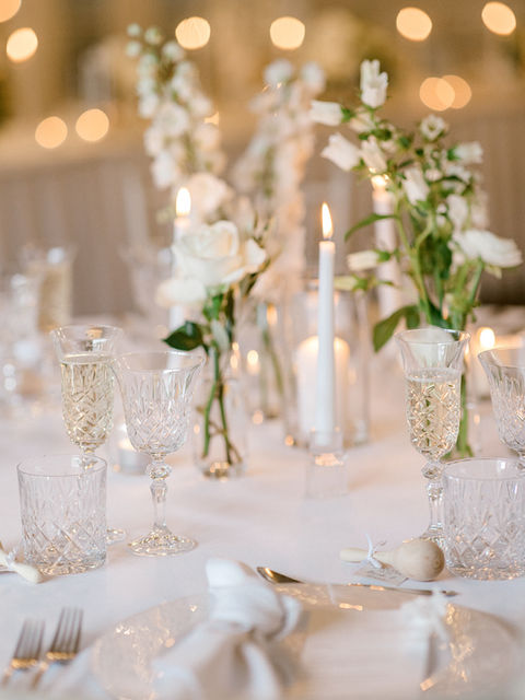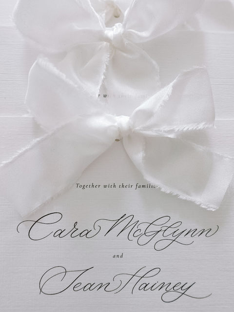 Set amidst the lush countryside of Scotland, Cara and Sean’s wedding at Lochgreen House Hotel was a romantic and understated celebration of timeless elegance. The historic charm of the venue, paired with soft candlelight, abundant florals, and refined decorative touches, created a warm and intimate atmosphere for their celebration.We were honoured to design their full stationery suite from their custom invitations to day-of details. The bespoke wedding menus for the reception was crafted on luxurious linen card and individually personalised with each guest’s name. Finished with silky white ribbon, the menus added a soft, romantic layer to the tablescape, complementing the overall aesthetic with quiet refinement. Every detail was thoughtfully considered to reflect the couple’s vision — resulting in a celebration that felt classic, personal, and beautifully enduring.