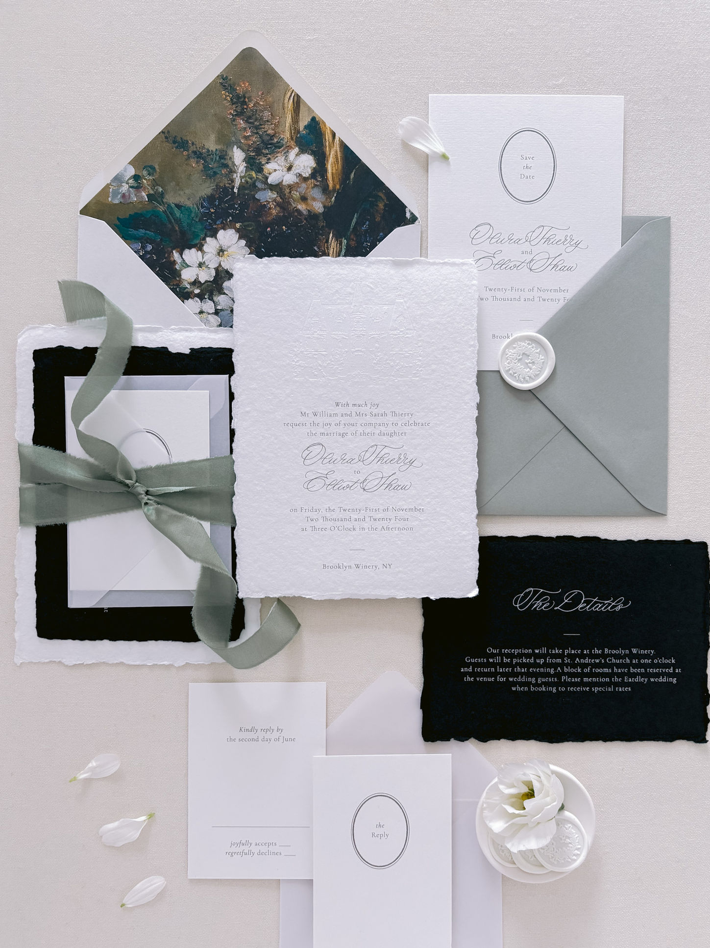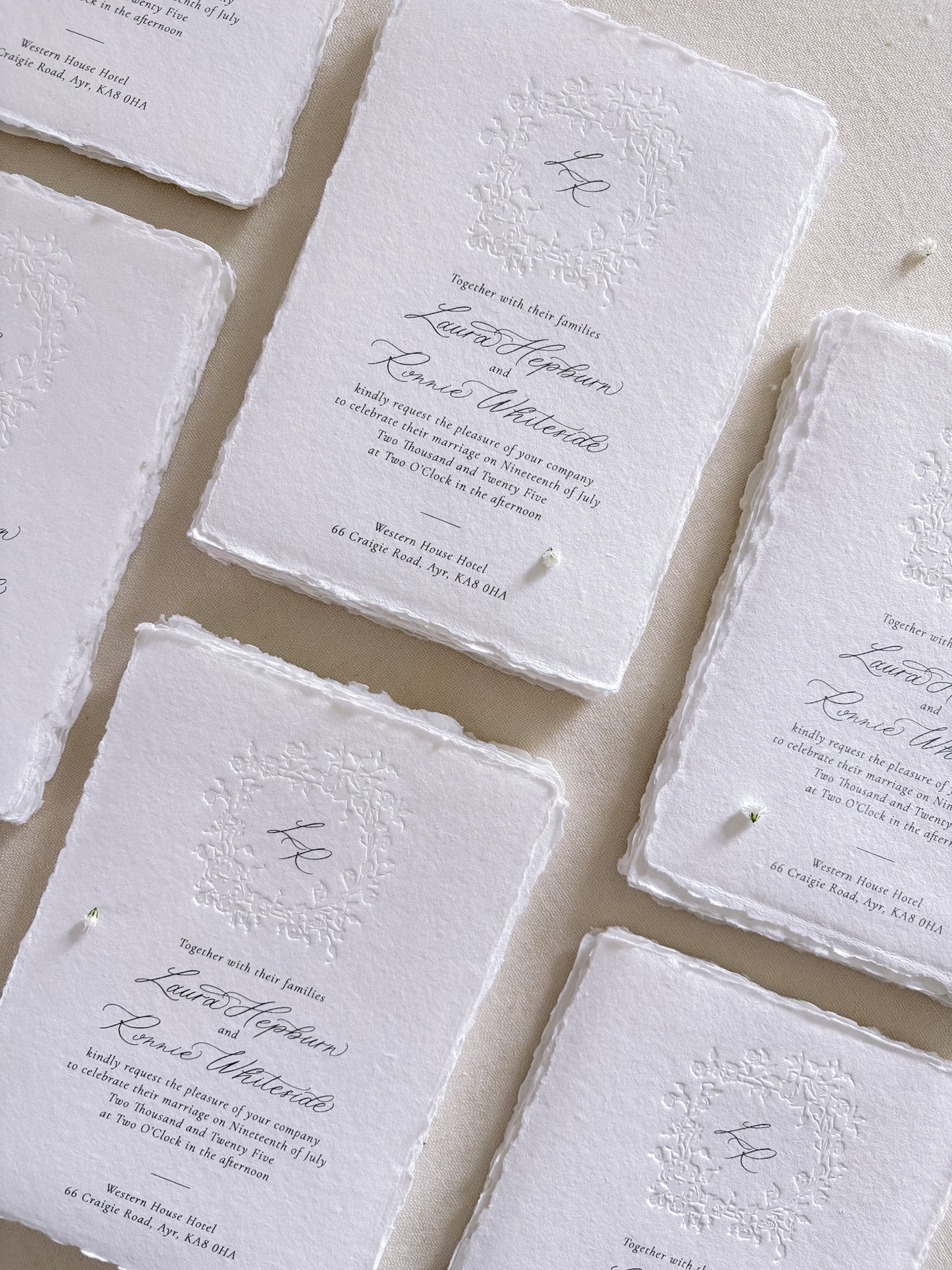 After receiving your request, we'll send you a detailed proposal outlining your invitation suite within a few days. This proposal will include all design elements, options for materials and finishes, and a breakdown of costs. Once the proposal has been approved and the deposit submitted, you'll officially be booked in our calendar.